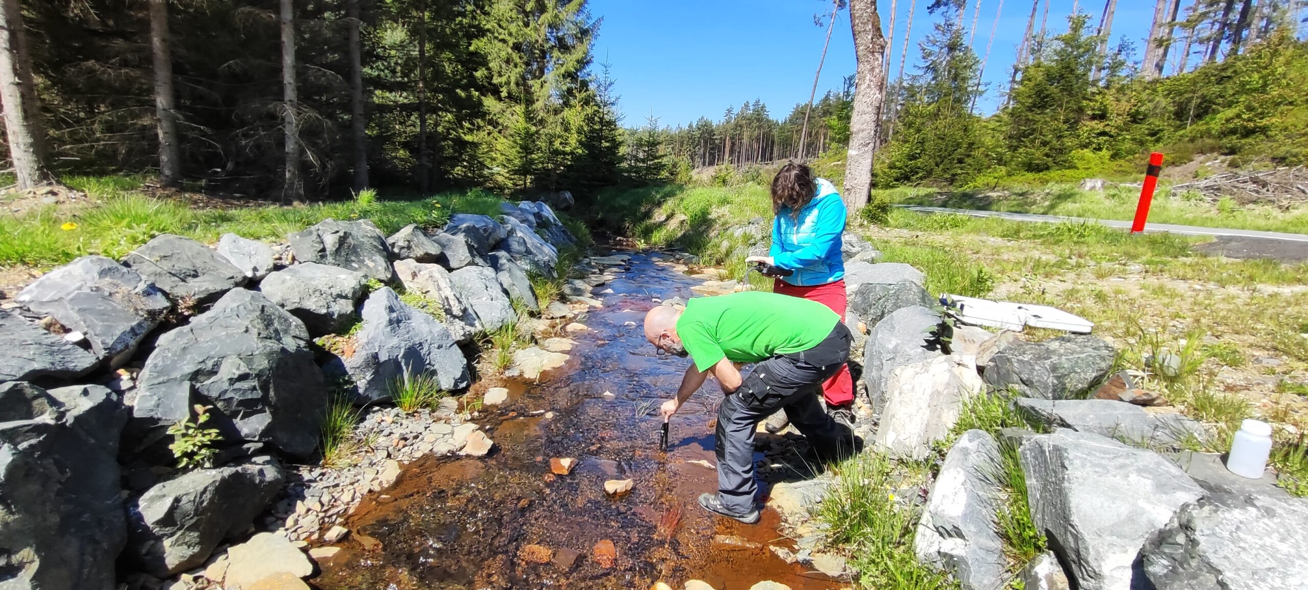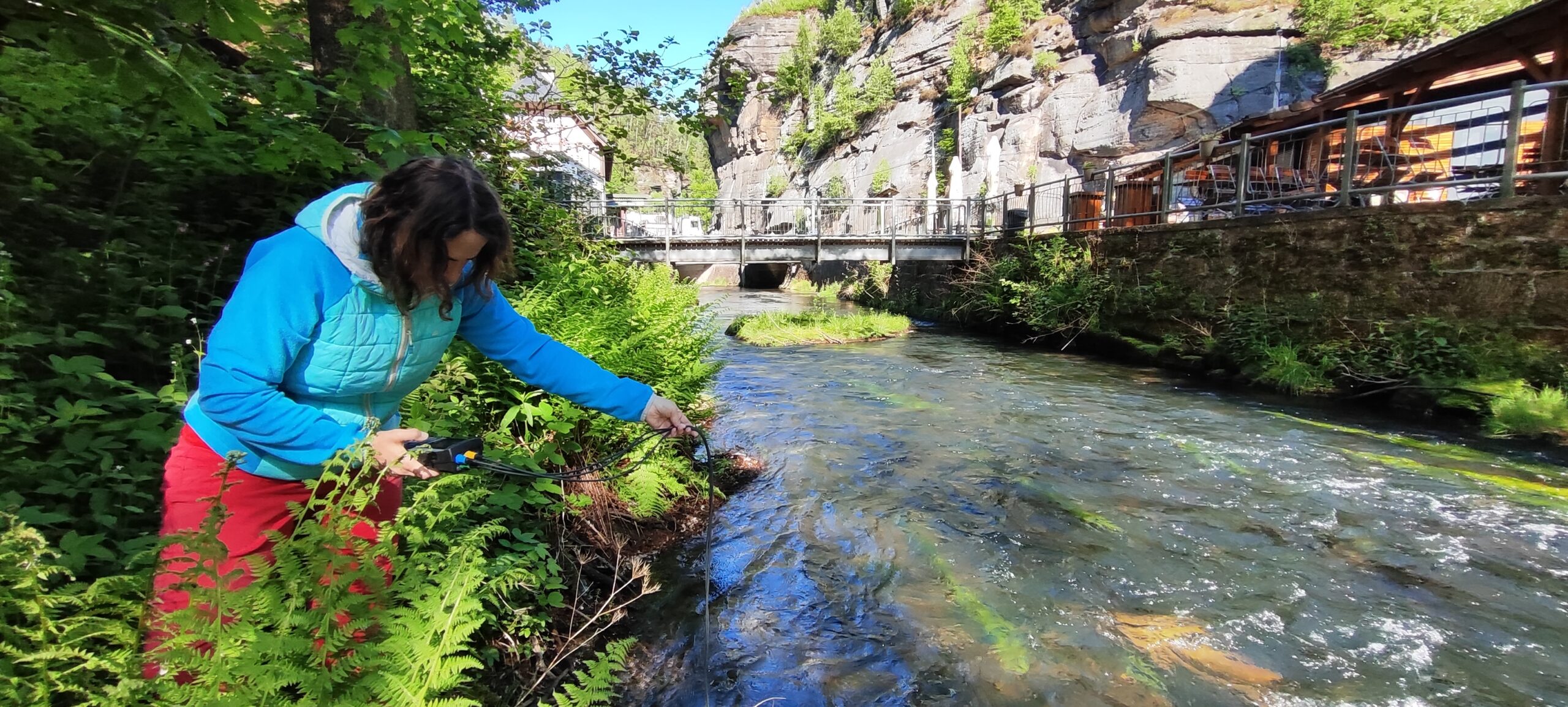 - Odběr vzorků vody a měření parametrů vody v řece Kamenici v Hřensku.